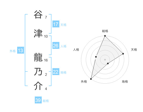 谷津 龍乃介さんを姓名の画数から五運を鑑定