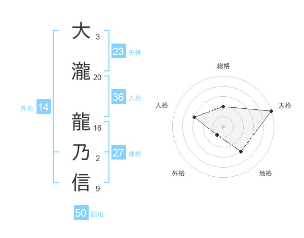 大瀧 龍乃信さんを姓名の画数から五運を鑑定
