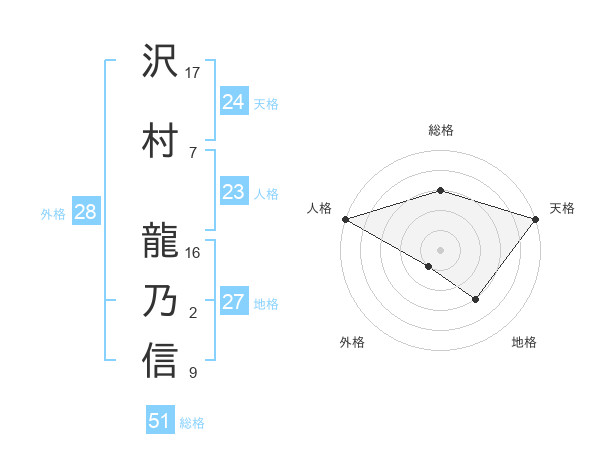 沢村 龍乃信さんを姓名の画数から五運を鑑定