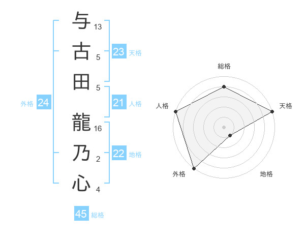 与古田 龍乃心さんの外格は24画の5点!