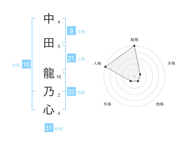 中田 龍乃心さんを姓名の画数から五運を鑑定