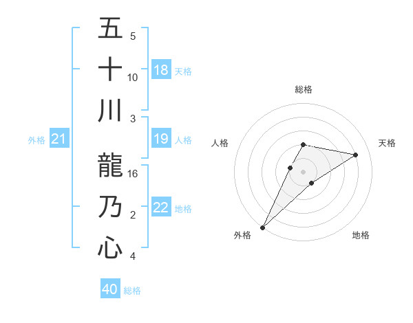 五十川 龍乃心さんを姓名の画数から五運を鑑定
