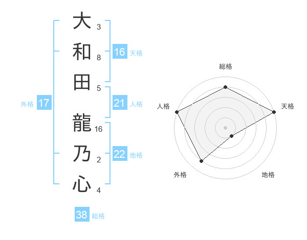 大和田 龍乃心さんを姓名の画数から五運を鑑定