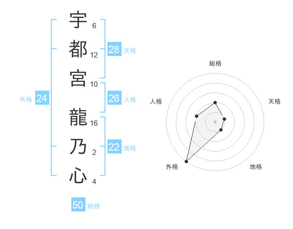 宇都宮 龍乃心さんを姓名の画数から五運を鑑定