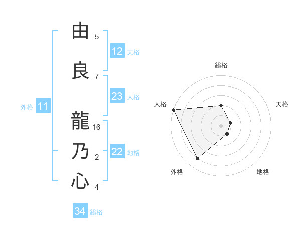 由良 龍乃心さんを姓名の画数から五運を鑑定
