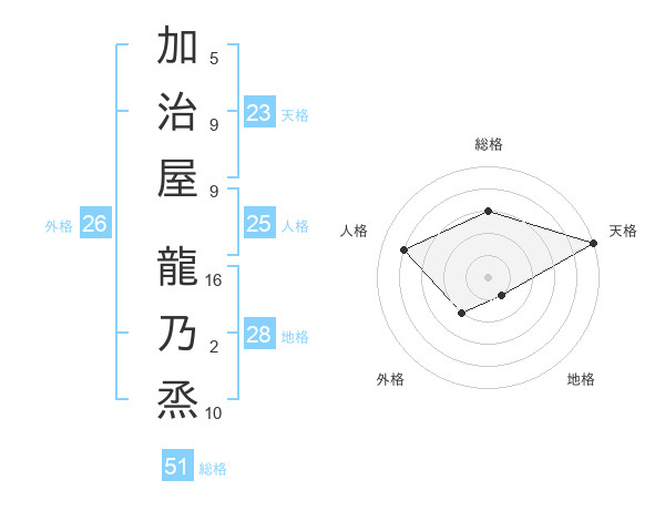 加治屋 龍乃烝さんを姓名の画数から五運を鑑定