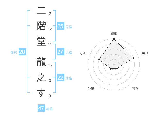 二階堂 龍之すさんの総格は47画の5点!