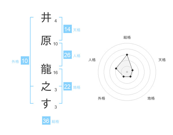 井原 龍之すさんを姓名の画数から五運を鑑定
