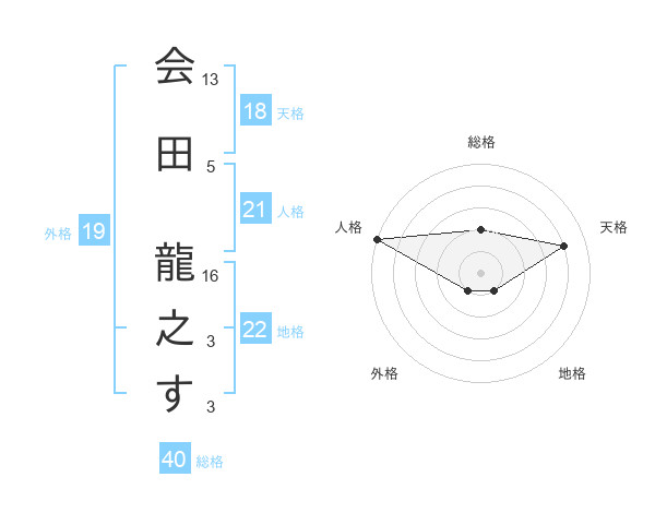 会田 龍之すさんの天格は18画の4点!
