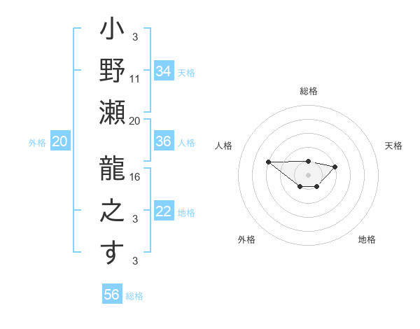 小野瀬 龍之すさんを姓名の画数から五運を鑑定