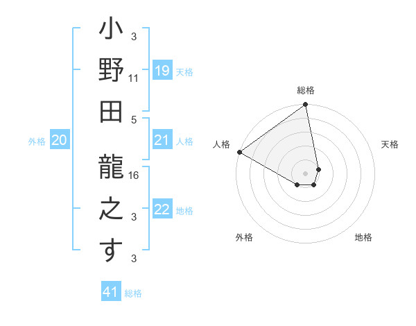 小野田 龍之すさんを姓名の画数から五運を鑑定