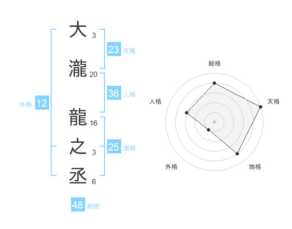 大瀧 龍之丞さんを姓名の画数から五運を鑑定