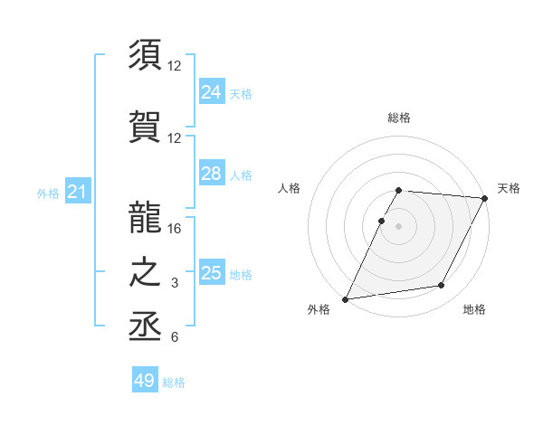 須賀 龍之丞さんの天格は24画の5点!