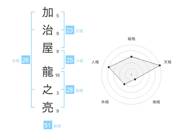 加治屋 龍之亮さんを姓名の画数から五運を鑑定