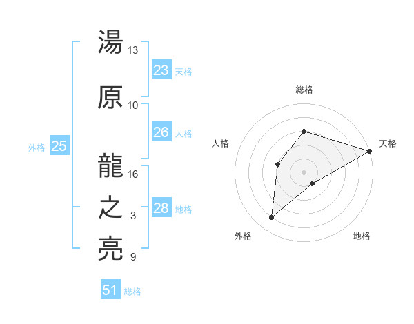 湯原 龍之亮さんの総格は51画の3点!