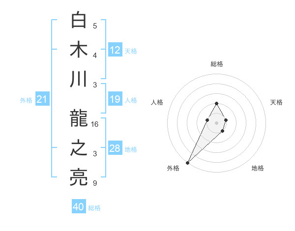 白木川 龍之亮さんの外格は21画の5点
