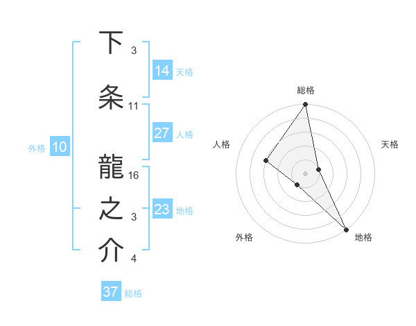 下条 龍之介さんの総格は37画の5点!
