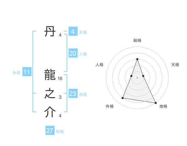 丹 龍之介さんの総格は27画の3点!