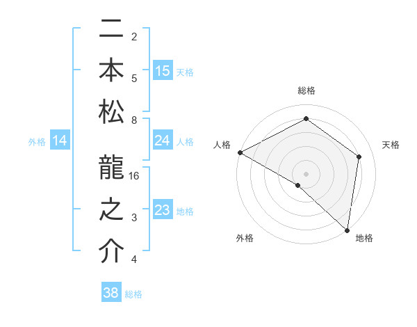 二本松 龍之介さんを姓名の画数から五運を鑑定