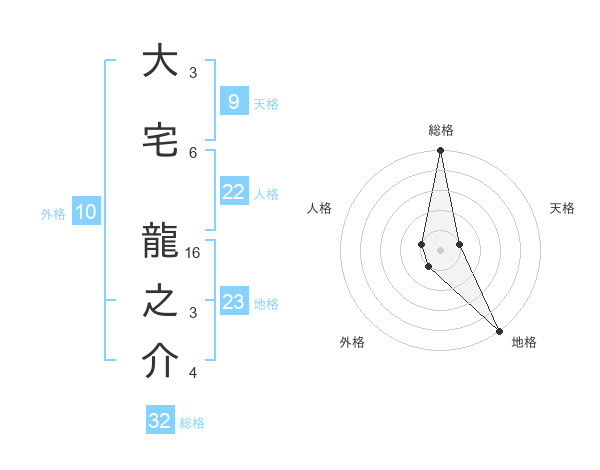 大宅 龍之介さんを姓名の画数から五運を鑑定