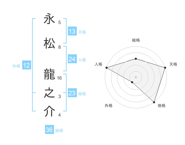 永松 龍之介さんの天格は13画の5点!
