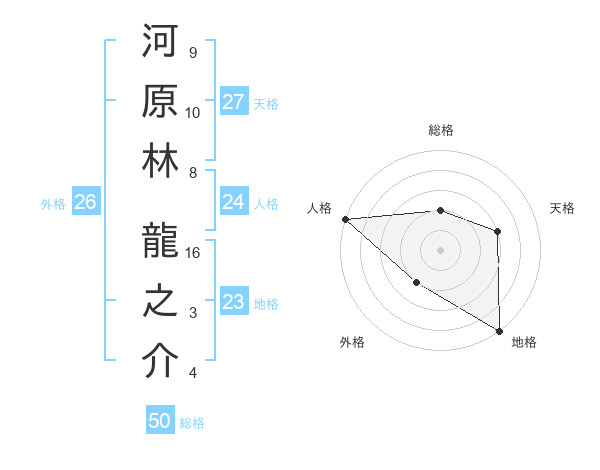 河原林 龍之介さんの総格は50画の2点!