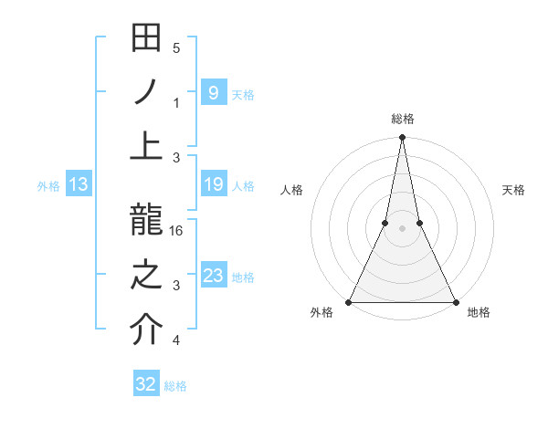 田ノ上 龍之介さんを姓名の画数から五運を鑑定