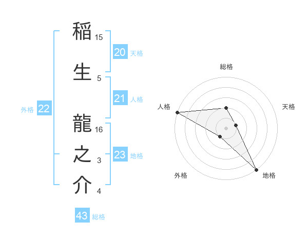 稲生 龍之介さんを姓名の画数から五運を鑑定