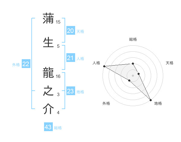 蒲生 龍之介さんを姓名の画数から五運を鑑定