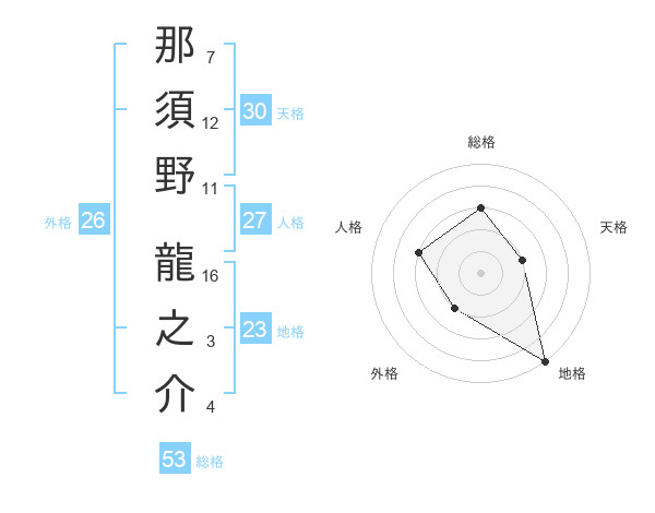那須野 龍之介さんを姓名の画数から五運を鑑定