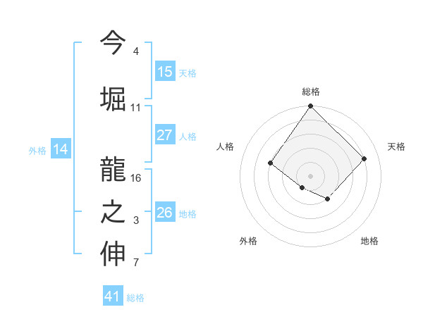 今堀 龍之伸さんを姓名の画数から五運を鑑定