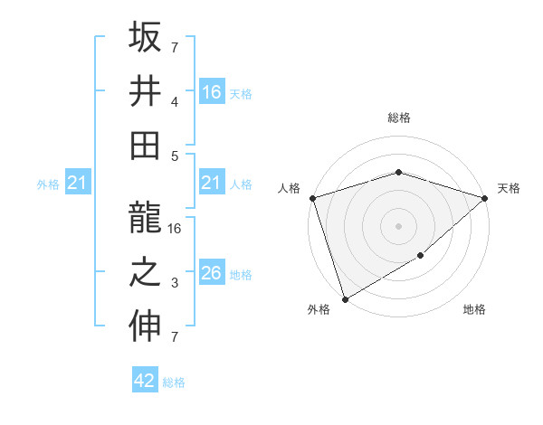 坂井田 龍之伸さんの外格は21画の5点!