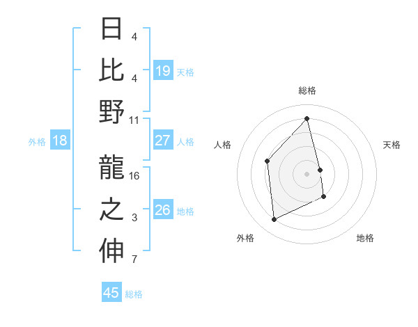 日比野 龍之伸さんを姓名の画数から五運を鑑定