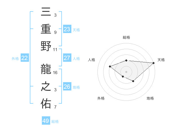 三重野 龍之佑さんを姓名の画数から五運を鑑定