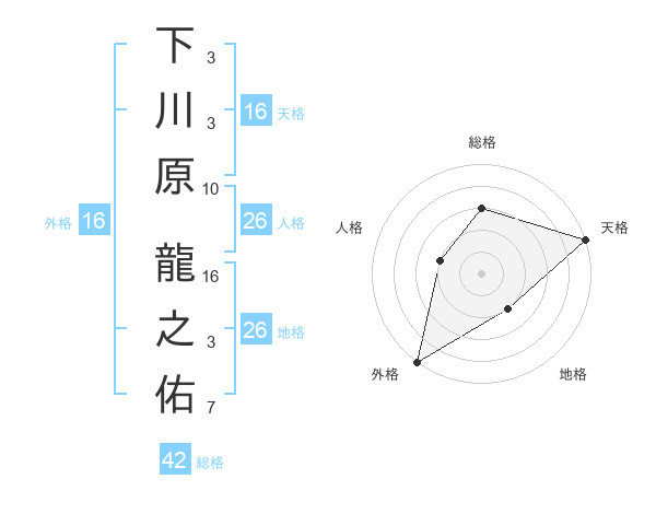 下川原 龍之佑さんを姓名の画数から五運を鑑定