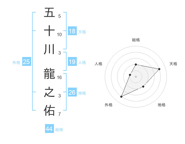 五十川 龍之佑さんの総格は44画の2点!