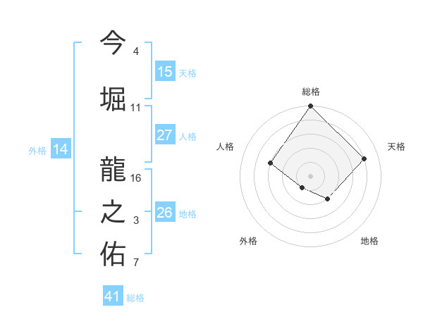 今堀 龍之佑さんを姓名の画数から五運を鑑定