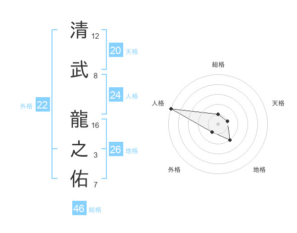 清武 龍之佑さんを姓名の画数から五運を鑑定