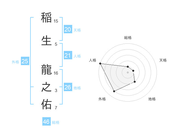 稲生 龍之佑さんを姓名の画数から五運を鑑定