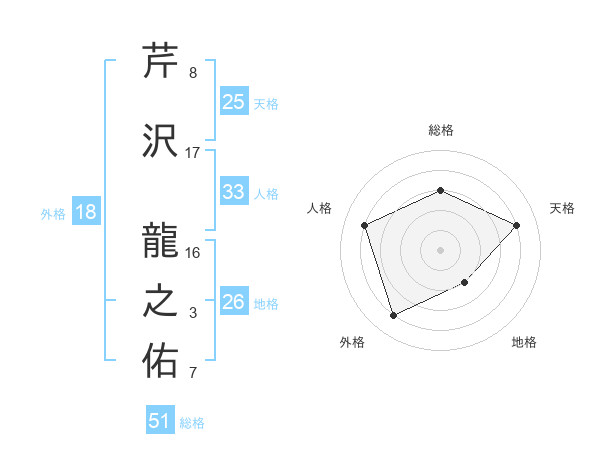 芹沢 龍之佑さんの総格は51画の3点!