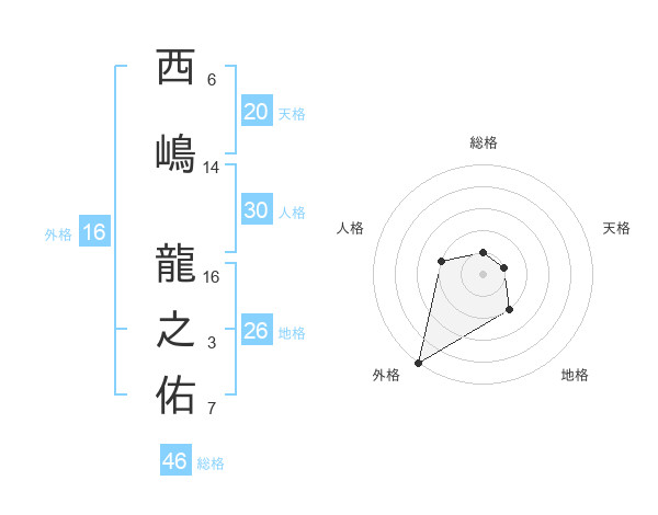 西嶋 龍之佑さんを姓名の画数から五運を鑑定