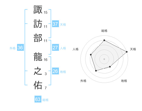 諏訪部 龍之佑さんの総格は63画の4点!