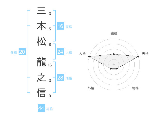 三本松 龍之信さんを姓名の画数から五運を鑑定