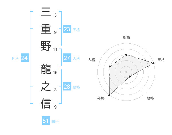 三重野 龍之信さんを姓名の画数から五運を鑑定