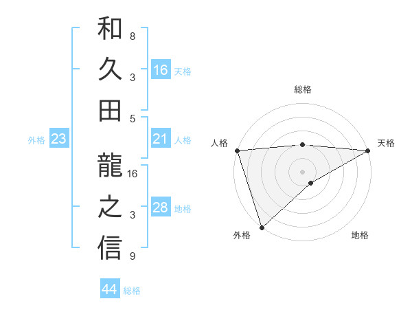 和久田 龍之信さんを姓名の画数から五運を鑑定