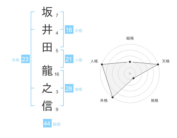 坂井田 龍之信さんの外格は23画の5点!