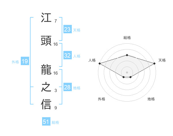 江頭 龍之信さんを姓名の画数から五運を鑑定