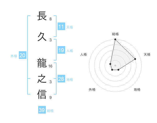 長久 龍之信さんを姓名の画数から五運を鑑定