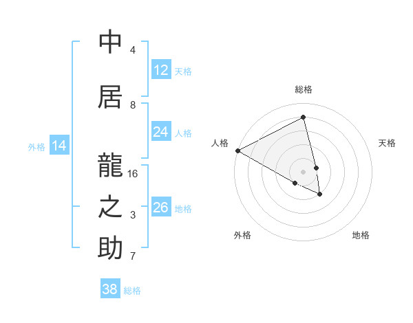 中居 龍之助さんの総格は38画の4点!