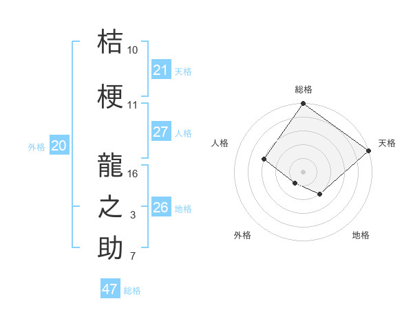 桔梗 龍之助さんの天格は21画の5点!